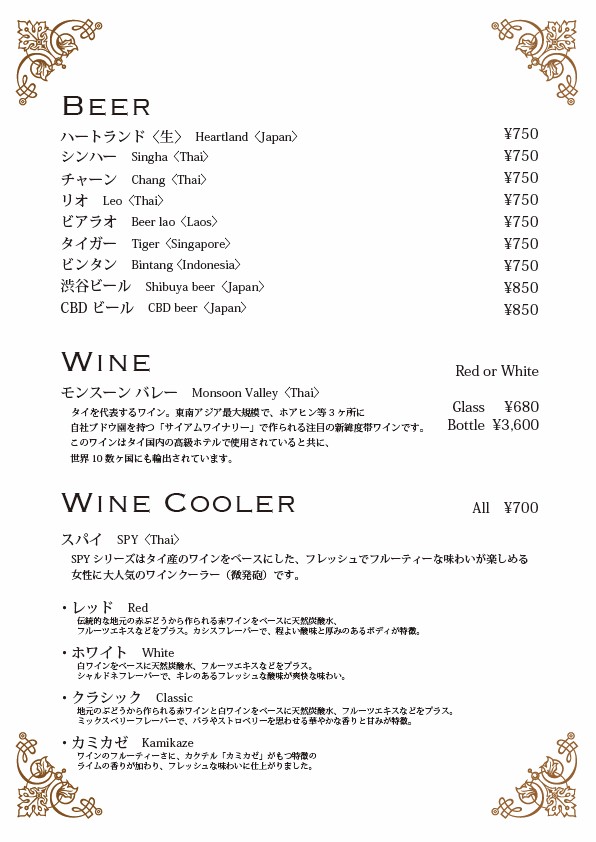 メニューは店舗によって多少の違いがございます。