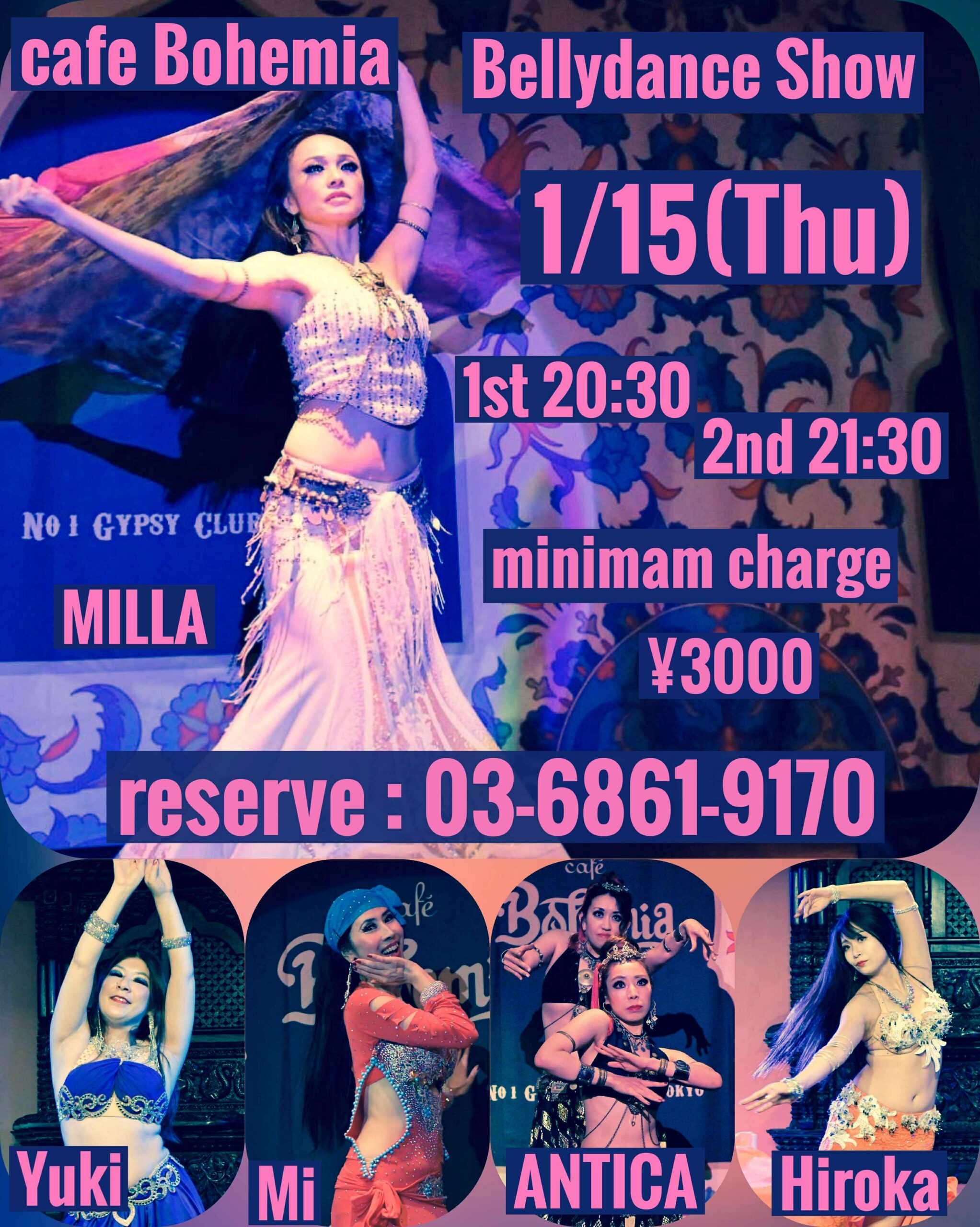 1/15 (Thu) MILLA BellyDance Show ■Show Time 1st 20:30~ 2nd 21:30~ ※ショーチャージフリー ※ミニマムオーダー¥3000のご飲食をお願いしております。 &l […]