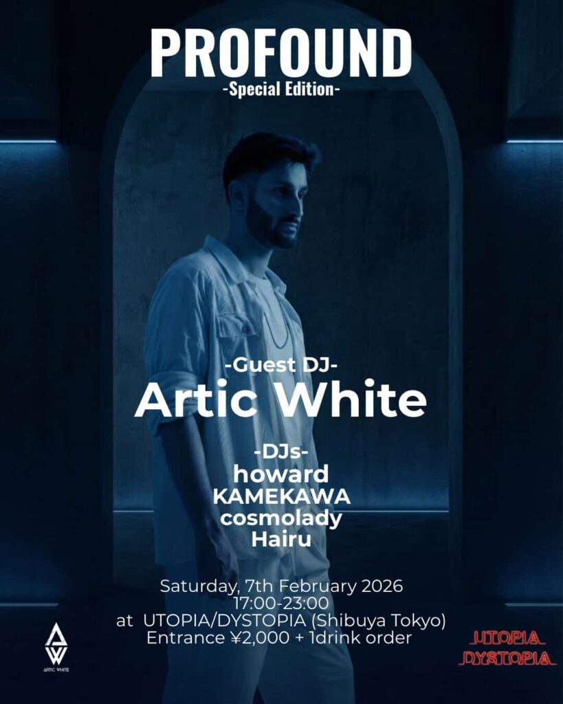 PROFOUND -Special Edition-2026年2月7日|By cafe 2/7 (Sat) “PROFOUND -Special Edition-“ [ Guest DJ ] Artic White [ DJ ] howard KAMEKAWA cosmolady Hairu [ TimeTable ] 17:00 – OPEN / START 23:00 – CLOSE [ System ] ¥2,000- (+1 drink) PrevNext